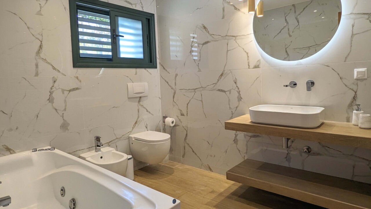 “STARFISH” (Asterias) Bungalow is part of a Bungalow Complex, which lies on a small hill exactly in front of the sea, close to Thessaloniki.It is complemented by a spacious, contemporary design living room (with convertible sofa), a modern, fully equipped kitchen, a shower room, a bathroom with Jacuzzi and a cozy double bedroom.Both living room and bedroom open up to the Bungalows Sea viewing, garden terrace.“STARFISH” Bungalow can accommodate up to 4 people, either all adults or 2 adults and 2 children.